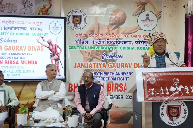 କୋରାପୁଟ: ଓଡ଼ିଶା କେନ୍ଦ୍ରୀୟ ବିଶ୍ୱବିଦ୍ୟାଳୟ, କୋରାପୁଟ ଆନୁକୁଲ୍ୟରେ ଭଗବାନ ବିର୍ସା ମୁଣ୍ଡାଙ୍କ ୧୫୦ତମ ଜୟନ୍ତୀ ପାଳନ ଅବସରରେ ନଭେମ୍ବର ୧୫ ତାରିଖରେ ସୁନାବେଡ଼ା ପରିସରରେ ଚତୁର୍ଥ ଜନ ଜାତୀୟ ଗୌରବ ଦିବସ ପାଳିତ ହୋଇଯାଇଛି। ଏହି କାର୍ଯ୍ୟକ୍ରମ ଆସନ୍ତା ୨୬ ନଭେମ୍ବର ୨୦୨୪ରେ ପାଳନ ହେବାକୁ ଥିବା ଦେଶର ସମ୍ବିଧାନ ଦିବସ ପର୍ଯ୍ୟନ୍ତ ଜାରି ରହିବ। ଏହି କାର୍ଯ୍ୟକ୍ରମକୁ ବିଶ୍ୱବିଦ୍ୟାଳୟର କୁଳପତି ପ୍ରଫେସର ଚକ୍ରଧର ତ୍ରିପାଠୀ ଉଦ୍ଘାଟନ ଓ ସଭାପତିତ୍ୱ କରିଥିଲେ। ଅନ୍ୟମାନଙ୍କ ମଧ୍ୟରେ ରେଜିଷ୍ଟ୍ରାର ପ୍ରଫେସର ଏନ୍ ସି ପଣ୍ଡା; ଉପଦେଷ୍ଟା - ଏକାଡେମିକ ଆଣ୍ଡ ଆଡମିନିଷ୍ଟ୍ରେସନ ପ୍ରଫେସର ଭି.ସି.ଝା; ଏବଂ ସମାଜବିଜ୍ଞାନ ବିଭାଗର ମୁଖ୍ୟ ଡ. କପିଳ ଖେମୁଣ୍ଡୁ ପ୍ରମୁଖ ଉପସ୍ଥିତ ଥିଲେ। କୁଳପତି ଓ ଅନ୍ୟ ମାନ୍ୟଗଣ୍ୟ ବ୍ୟକ୍ତିଙ୍କ ଦ୍ୱାରା ଦୀପ ପ୍ରଜ୍ୱଳନ ସହ ଭଗବାନ ବିର୍ସା ମୁଣ୍ଡାଙ୍କୁ ପୁଷ୍ପମାଲ୍ୟ ଅର୍ପଣ କରି କାର୍ଯ୍ୟକ୍ରମ ଆରମ୍ଭ ହୋଇଥିଲା।