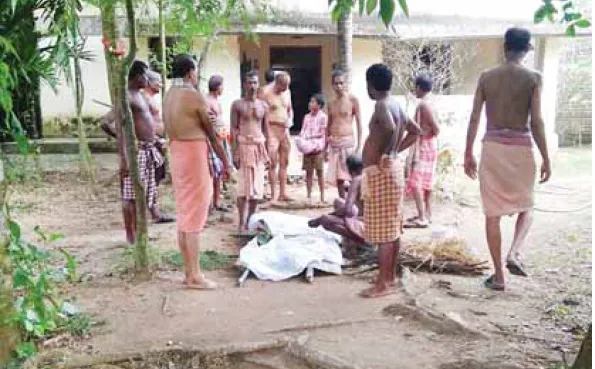 ଗାରୋଇ : କୋକେଇରେ ଶୋଇଥିଲା ତିନି ଶହ ପଳାସ ପତ୍ରରେ ପ୍ରସ୍ତୁତ ପ୍ରତୀକାତ୍ମକ ଶବ। ପତ୍ନୀ ବାହୁନି କାନ୍ଦୁ ଥିଲେ। ବଡ଼ ପୁଅ ବେଣୀରେ ନିଆଁ ଧରାଇ ଆଗେ ଆଗେ ଯାଉଥିଲେ। ନାତି ଖଇ କଉଡ଼ି ପକାଉଥିଲେ। ବଂଧୁ ପରିଜନ ବି ସାମିଲ ହୋଇ ଘରୁ ଶ୍ମଶାନ ପର୍ଯ୍ୟନ୍ତ ଯାଇ ଶବ ସତ୍କାର କରାଇଥିଲେ। ସେଠି ବି ବଡ଼ ପୁଅ ମୁଖାଗ୍ନି ଦେଇଥିଲେ। ସୋମବାର ଦିନ ପାଖାପାଖି ୧୦ ଟା ସମୟରେ ଜଗତସିଂହପୁର ଜିଲ୍ଲା ନାଉଗାଁ ବ୍ଲକ ଅନ୍ତର୍ଗତ ଶିଖର ପଂଚାୟତର ପାଟେଣି ଗାଁରେ ଏଭଳି ଏକ ଦୃଶ୍ୟ ଦେଖିବାକୁ ମିଳିଥିଲା।
